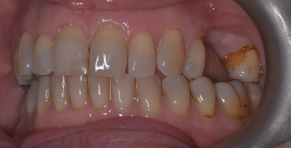 This lovely lady was already a patient of the practice when I saw her. She'd had a gap at the upper left for some time, ever since the first molar had cracked in half. She was also starting to show signs of a crack in the second molar (UL7) so I surmised she's got a pretty strong bite!